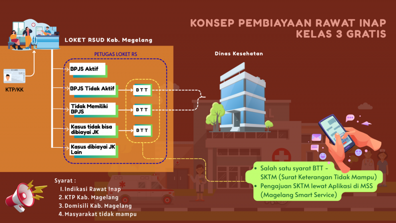 Warga Kabupaten Magelang kini bisa menikmati layanan rawat inap kelas 3 di rumah sakit secara gratis.
